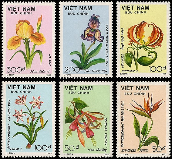 Bộ tem “Hoa Đà Lạt” gồm 06 mẫu, được phát hành ngày 23/9/1989: