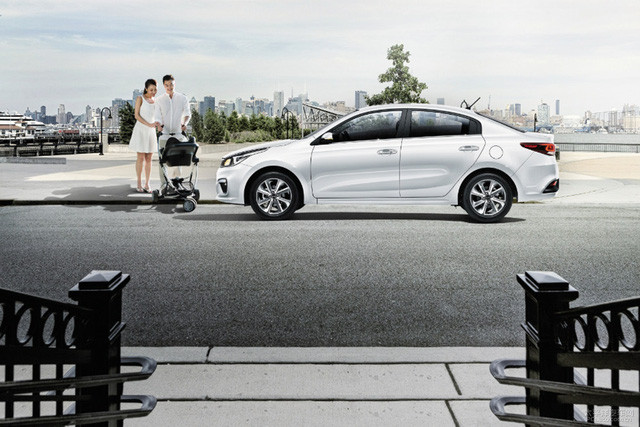Bên sườn Kia K2 là đường viền cửa sổ tái thiết kế. Xe được trang bị bộ vành la-zăng 4 chấu 2 tông màu mới.