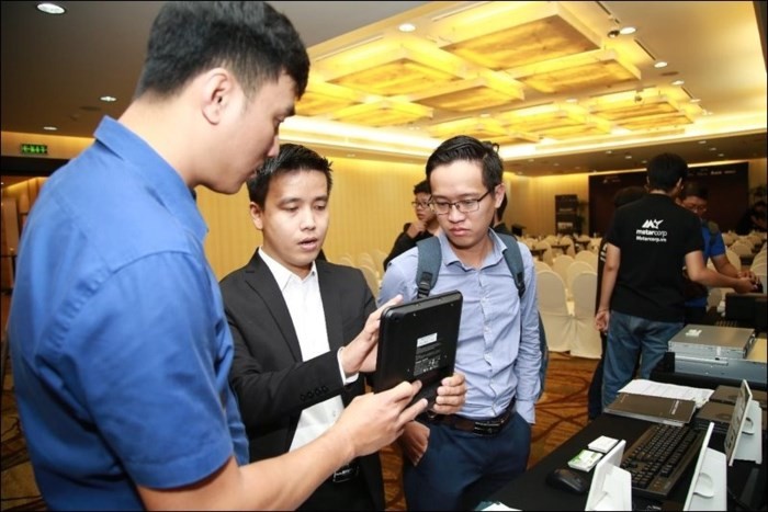 Đại diện nhà phân phối đang giới thiệu về những chiếc máy Shuttle XPC nhỏ gọn.