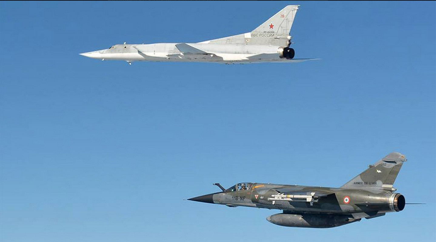 Một chiếc chiến đấu cơ Rafale của Pháp bay kèm Tu-22M3