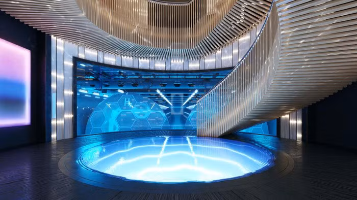 Bản mô phỏng cho thấy bể bơi vô cực, sân bay trực thăng, spa và hồ bơi sẽ được xây dựng trên tàu, cung cấp các tiện nghi hiện đại nhất cho du khách trải nghiệm.