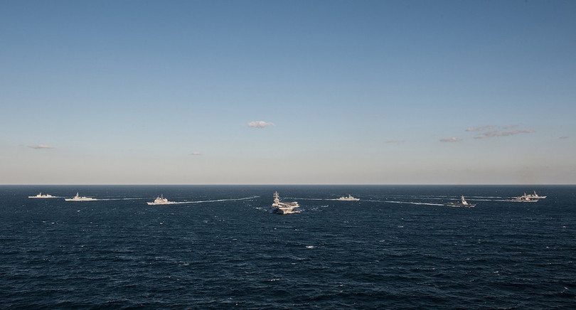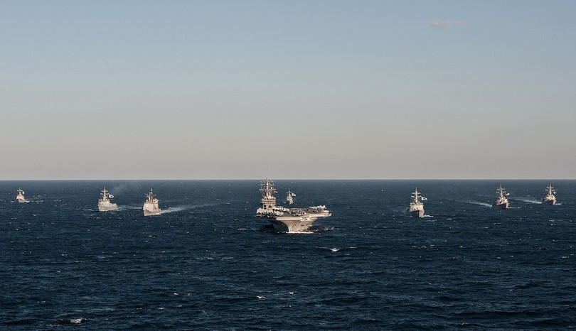 Ngày 28-10, tại vùng biển phía Đông bán đảo Triều Tiên, mẫu hạm Reagan (CVN-76) của hải quân Mỹ đã triển khai đợt huấn luyện với hải quân Hàn Quốc.