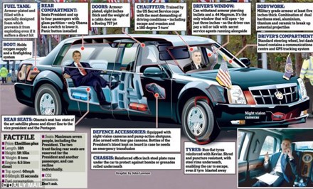 Trong khoang lái của xe có thể bảo vệ tổng thống ngay cả khi bị tấn công bằng súng phóng lựu, tên lửa chống tăng và các loại vũ khí hóa học.