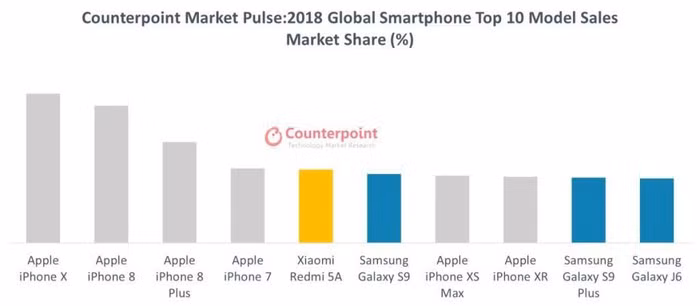 iPhone 8 là smartphone bán chạy thứ 2 thế giới trong năm 2018. Ảnh: Counterpoint Research.