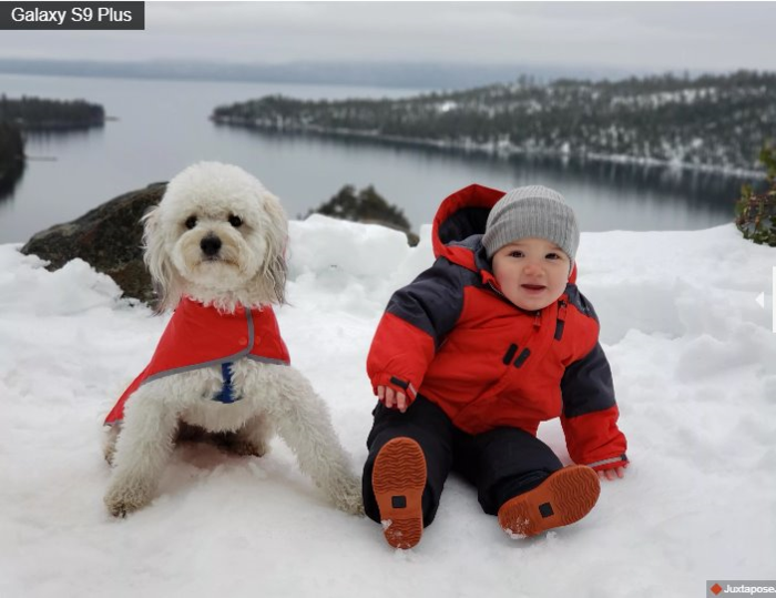 Cả Galaxy S9 và S9 Plus đều có camera kép với 2 khẩu độ thay đổi linh hoạt trên ống kính chính mang lại góc chụp khá rộng, đồng thời cho phép ống kính tự điều chỉnh trong bất cứ điều kiện ánh sáng nào. Chính vì thế trong bức ảnh chụp hồ nước này, Galaxy S9 Plus tạo nên hình ảnh trông mềm mại hơn, trong khi ảnh chụp bởi iPhone có nhiều nét tương phản và kết cấu rõ hơn.