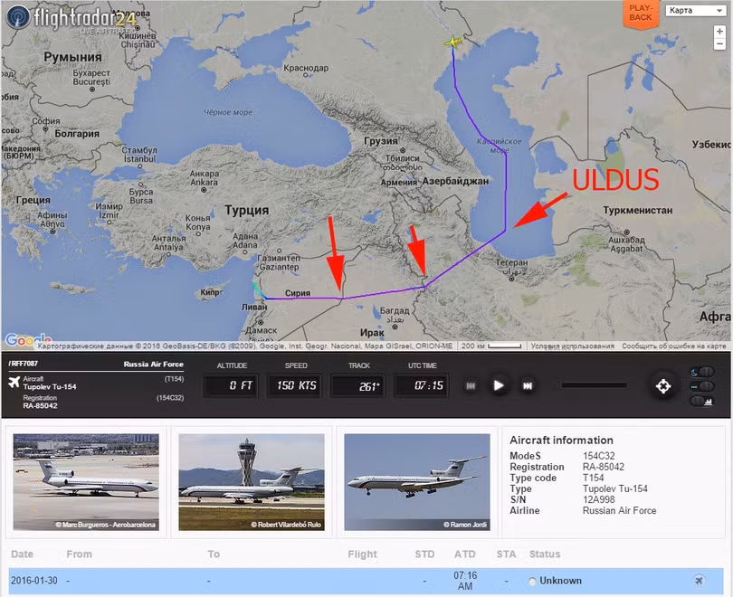 Theo những thông tin nhận được, các tiêm kích hiện đại nhất của không quân vũ trụ Nga đã tiến hành chuyến bay bí mật từ sân bay Privolga (vùng Astrakhan), che chắn bởi máy bay chở khách Tu-154M của không quân Nga (số đăng ký RA-85.042).