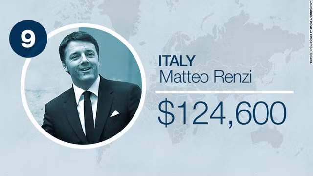 Thủ tướng Ý Matteo Renzi xếp ở vị trí số 9 với mức lương 124.600 USD.