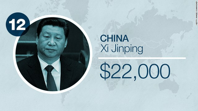 Là người dẫn đầu nền kinh tế lớn thứ hai thế giới nhưng Chủ tịch Trung Quốc Tập Cận Bình chỉ nhận được mức lương 22.000 USD mỗi năm dù ông vừa được tăng lương 60% kể từ đầu năm 2015.