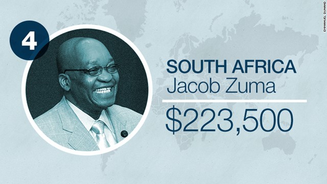 Đứng thứ tư trong danh sách là Jacob Zuma – Tổng thống Nam Phi – với mức lương 223.500 USD/năm.