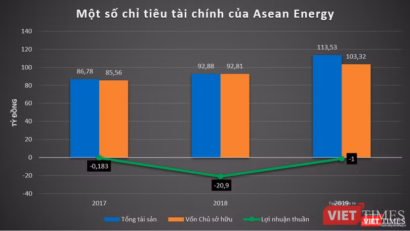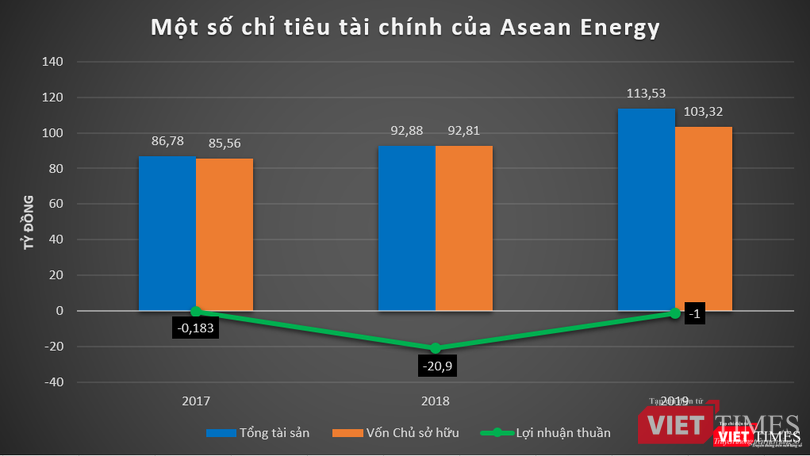 Về kết quả kinh doanh, năm 2018, Asean Energy không phát sinh doanh thu. Sang năm 2019, doanh thu thuần của doanh nghiệp này đạt 520 triệu đồng; lỗ sau thuế ở mức 1 tỷ đồng, trong khi năm 2018 lỗ 20,9 tỷ đồng.