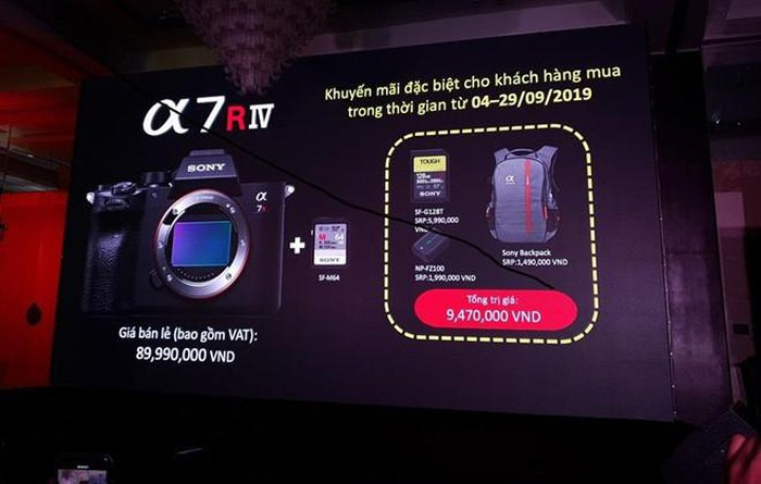 Chiếc a7R IV sẽ được Sony bán ra từ ngày 4/9, với mức giá tham khảo 89,9 triệu đồng.
