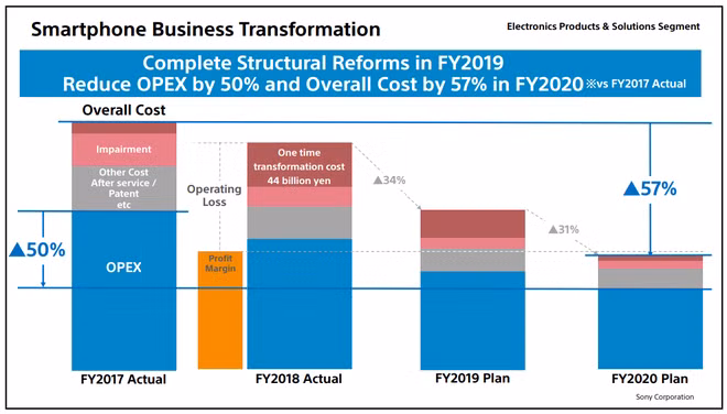 Sony cho biết hãng mong muốn mảng di động sẽ có lãi vào năm 2020, thông qua việc giảm chi phí hoạt động còn một nửa so với năm 2017. Ngoài ra, Sony cũng mong muốn mảng di động sẽ làm việc chặt chẽ hơn với các bộ phận còn lại trong mảng điện tử của Sony như máy ảnh, âm thanh, hình ảnh để đem đến những chiếc smartphone hấp dẫn hơn, ví dụ như chiếc Xperia 1 mà Sony ra mắt gần đây.