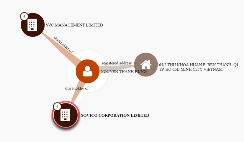 Liên đồ về ông Nguyễn Thanh Hùng trong cơ sở dữ liệu của ICIJ.
