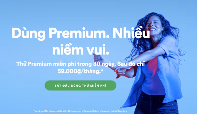 Ngày 13/3, Spotify chính thức có mặt tại thị trường Việt Nam. Người dùng có thể đăng ký và sử dụng ngay trên giao diện web hay tải về ứng dụng miễn phí. Song trải nghiệm “không giới hạn” sẽ mất phí. Cụ thể Spotify cung cấp gói Spotify Premium trong thời gian nhất định chứ không vĩnh viễn, gồm hai lựa chọn: mua theo tháng giá 59.000 đồng và theo năm giá 702.000 đồng (miễn phí tháng đầu khi đăng ký thẻ tín dụng). Tất nhiên, nếu bạn không muốn nâng cấp thì vẫn có thể dùng nhưng sẽ bỏ lỡ nhiều tính năng quan trọng.