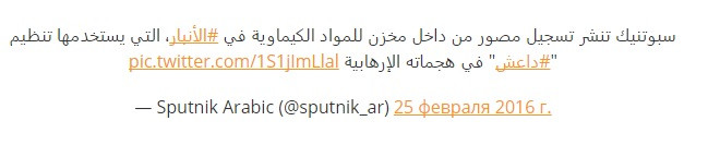 Ngày 11.02.2016, IS đã sử dụng chất độc hóa học tấn công lực lượng dân quân người Kurd. Vụ tấn công hóa học khiến 23 người bị ngạt và bỏng da.