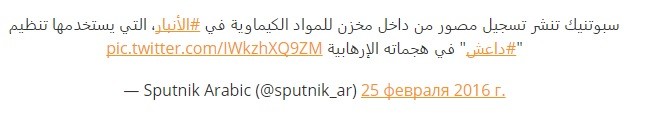 Một thành viên của lực lượng an ninh Iraq yêu cầu không tiết lộ tên của mình vì lý do an ninh, nói với Sputnik rằng, các binh sĩ Iraq đã phong tỏa, gài mìn lối vào kho và đưa chất độc hóa học đến nơi an toàn. Khu vực xung quanh kho được sơ tán và phong tỏa, lối vào bị cấm, bên trong kho vẫn còn mùi hăng của chất hóa học.