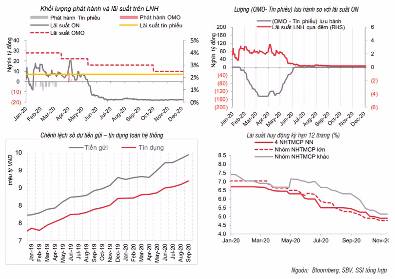 SSI cho rằng, thanh khoản các NHTM vẫn rất dồi dào nhưng dư địa giảm thêm của lãi suất tiền gửi không còn nhiều, xu hướng ngắn hạn sẽ là đi ngang.