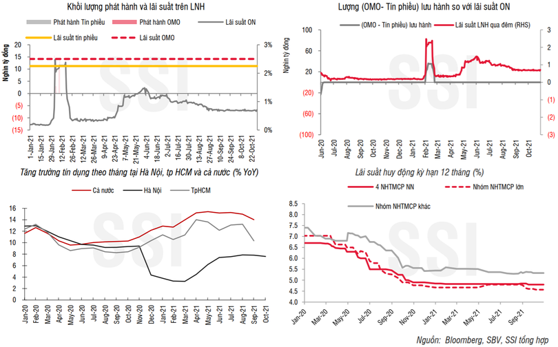 Trích dẫn số liệu Báo cáo tình hình kinh tế xã hội tháng 10/2021 của Tp. Hà Nội, SSI nhận thấy nhu cầu tín dụng vẫn tương đối yếu.