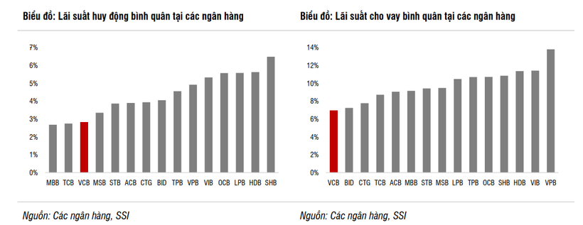 Sang năm 2023, chuyên gia SSI kỳ vọng Vietcombank sẽ linh hoạt hơn trong việc điều chỉnh lãi suất cho vay phù hợp với chi phí vốn tăng lên mà không ảnh hưởng đến khả năng trả nợ của khách hàng, do lãi suất cho vay tại nhà băng này đã thấp hơn nhiều so với các đơn vị cùng ngành.