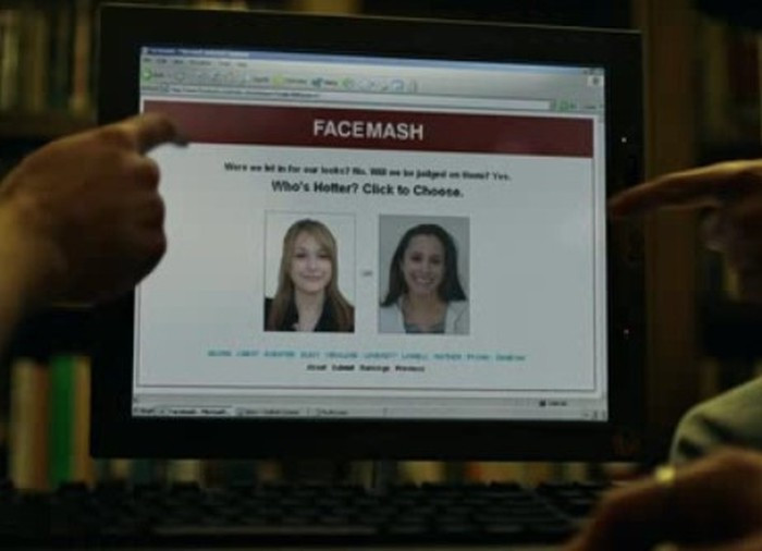 Facemash, công cụ cho phép đánh giá ngoại hình của các nữ sinh Harvard mới là phiên bản đầu tiên của Facebook. Ảnh: Phim The Social Network.