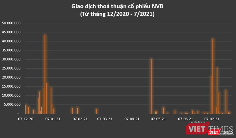 Tính từ đầu tháng 7/2021 tới trước thềm EGM 2021, có tới 116,1 triệu cổ phiếu NVB (tương đương với 28,3% vốn điều lệ của NCB) đã được trao tay qua phương thức thoả thuận. Trong đó, như VietTimes từng đề cập, gần 62 triệu cổ phiếu NVB (tương đương 15% vốn điều lệ) được sang tay chỉ trong hai phiên giao dịch./.