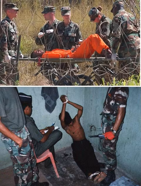 Tuy nhiên, Lầu Năm Góc tuyên bố, những hành động đối xử với tù nhân tương tự như vậy không thể được coi là phi nhân tính. Bộ máy lãnh đạo quân đội cho rằng các hành động tra tấn là hợp pháp, do tù binh đã khai ra những thông tin rất có giá trị. Một trong những ví dụ điển hình là số phận của Al Jazeera Sami al-Haj, người bị tình nghi khủng bố và đã bị giam từ năm 2001.