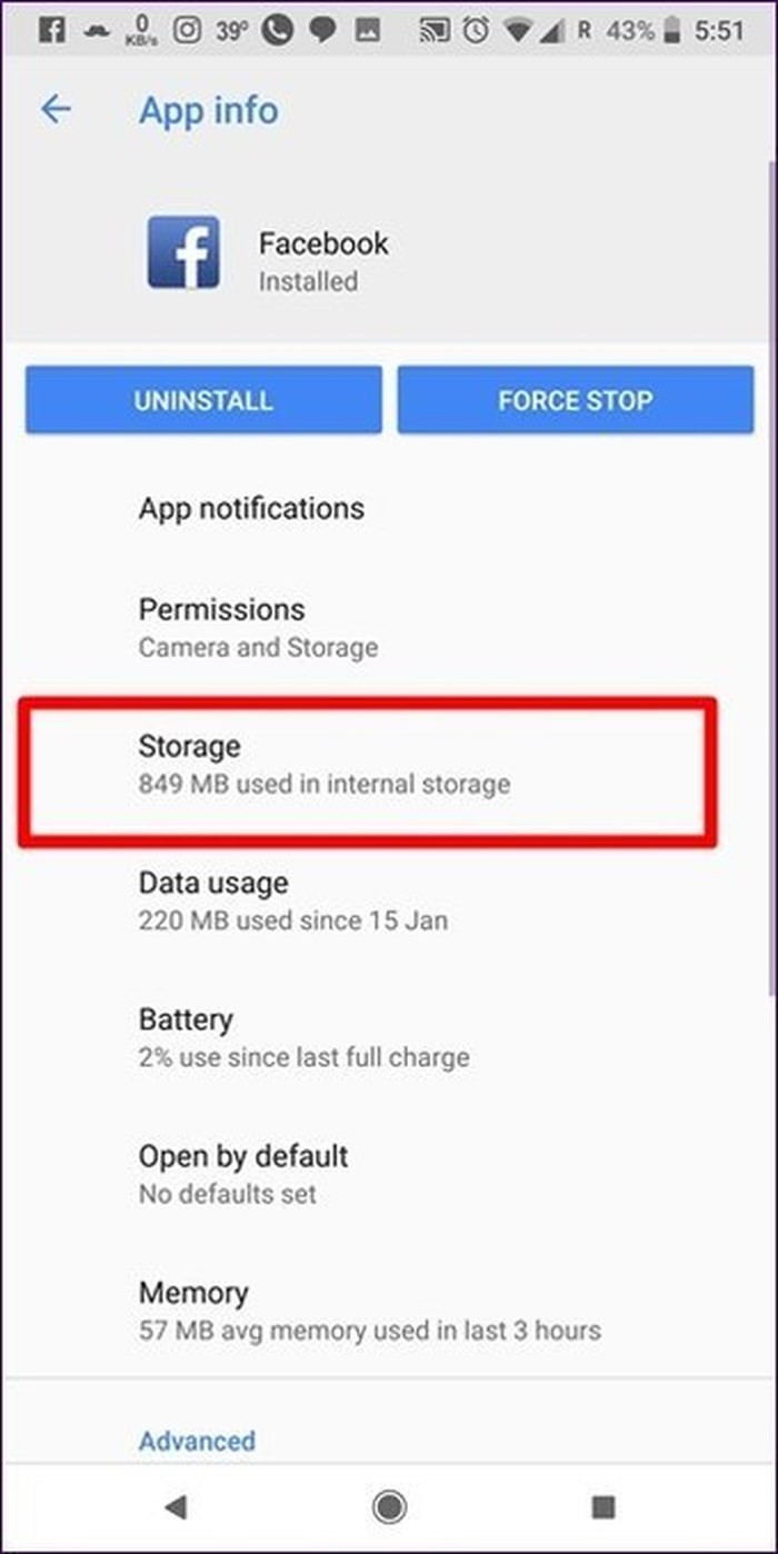 Xóa bộ nhớ đệm có thể hiệu quả với một số người dùng. Vào Settings > Apps, tìm Facebook > Storage > Clear Cache. Nếu vẫn không thành công, gỡ ứng dụng rồi tải lại từ Google Play Store.