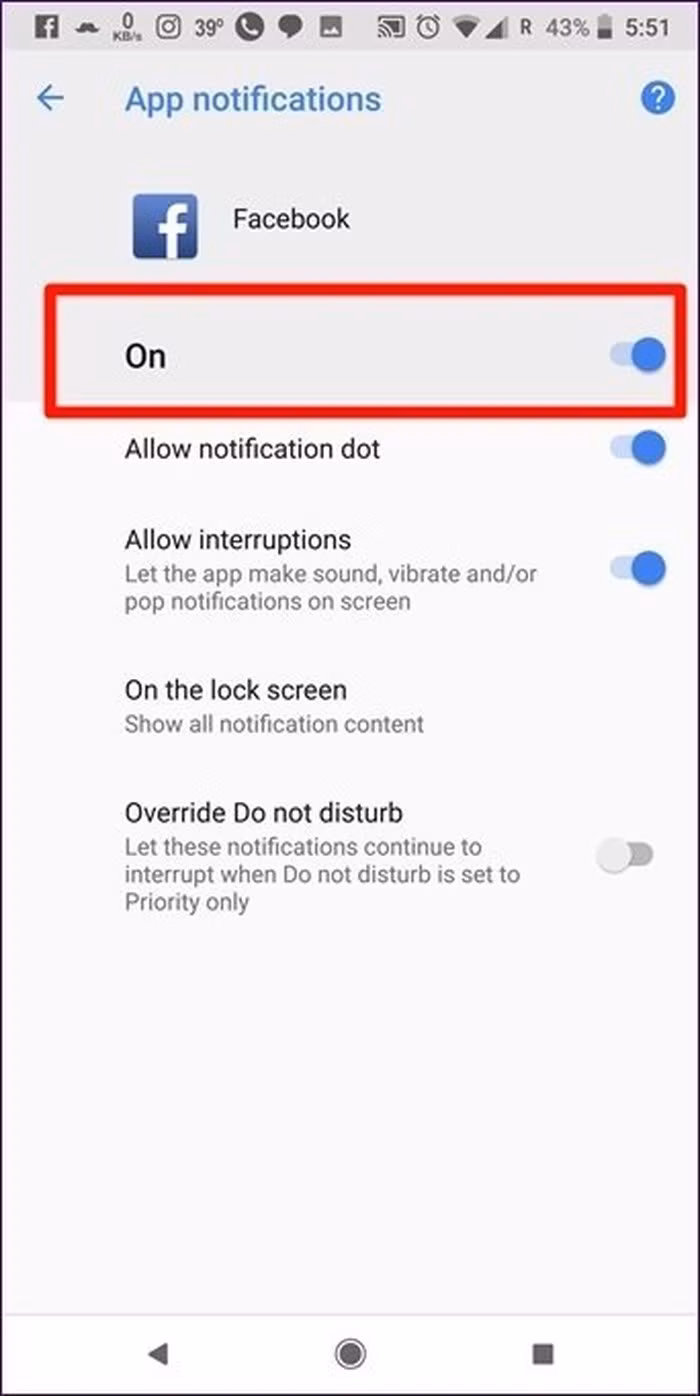 2. Xác minh cài đặt thông báo Facebook