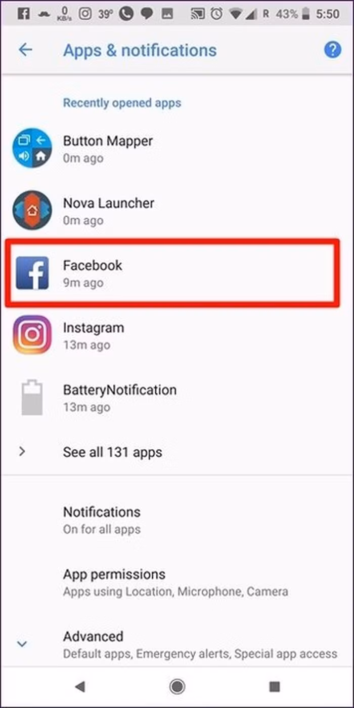 Bước 2: Bấm Facebook > App notifications