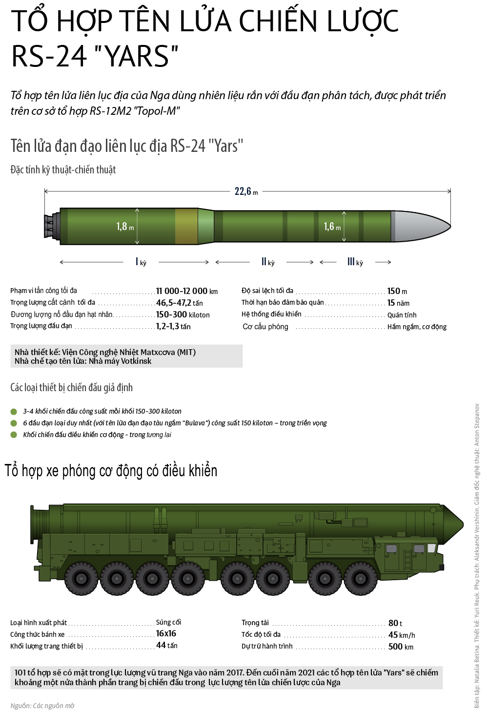 Tổ hợp tên lửa liên lục địa RS-24 "Yars" được chế tạo hướng tới khả năng chịu đựng được những vụ tấn công hạt nhân của đối phương, có khả năng cơ động cao. Đầu đạn tên lửa có khả năng xuyên thủng bất cứ "lá chắn tên lửa" nào và tấn công chính xác vào các mục tiêu kinh tế, chính trị quân sự trọng tâm của đối phương.
