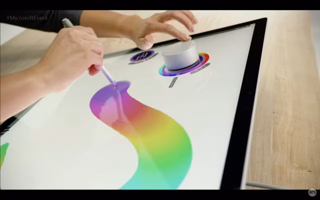 Đặc biệt, ngoài bút Surface Pen trước đây, Microsoft còn giới thiệu thêm một phụ kiện cực lạ lẫm, mang tên Surface Dial, thiết bị hỗ trợ tuyệt vời cho dân thiết kế.