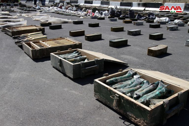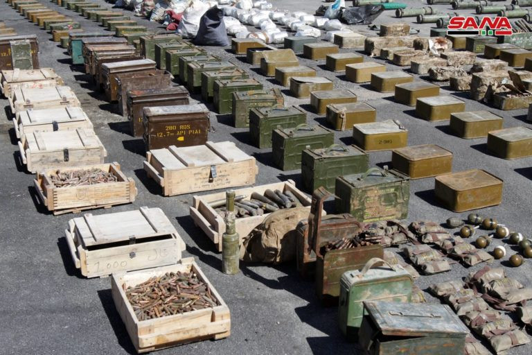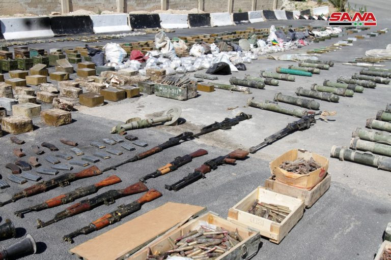 Trong cuộc phỏng vấn gần đây, một sĩ quan an ninh quân đội Syria phát biểu với phóng viên SANA tại Damascus cho biết: sau nhiều lần rà phá, thu gom vũ khí trang bị trong các hoạt động an ninh với sự giúp đỡ của người dân địa phương, quân đội Syria đã thu giữ một số lượng lớn vũ khí của lực lượng Hồi giáo cực đoan trên vùng ngoại ô Damascus.