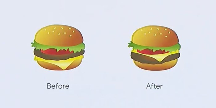 Cuộc tranh luận về biểu tượng cảm xúc bánh burger nổ ra từ hồi tháng 10 năm ngoái bởi một tweet từ tác giả Thomas Baakdel, người đã chỉ ra vị trí của pho mát trên biểu tượng cảm xúc của Apple so với Google. Hầu hết các ý kiến đồng ý rằng pho mát bên dưới bánh burger là chưa chính xác.