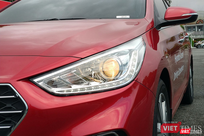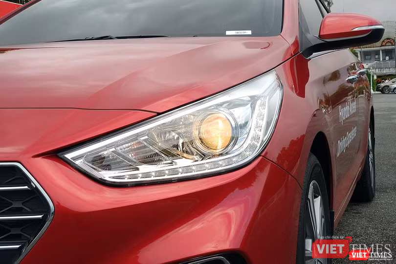 So với hầu hết các đối thủ cùng phân khúc sedan hạng B, Hyundai Accent 2018 ghi điểm với khách hàng bằng trang bị đèn pha projector halogen, có tính năng bổ trợ góc chiếu sáng khi vào cua, dải LED chiếu sáng ngày và cụm đèn hậu LED dạng 3D.