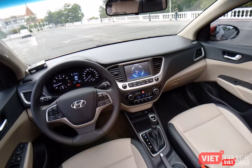 Với phiên bản 1.4 AT đặc biệt mà tôi có dịp lái thử, Accent 2018 sở hữu các trang bị tiêu chuẩn như nút bấm khởi động, điều hòa tự động, màn hình trung tâm cảm ứng, kết nối Bluetooth/USB, gương gập và chỉnh điện…