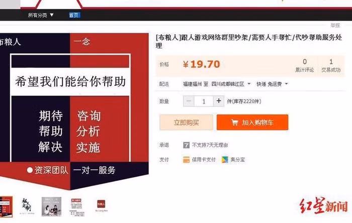 Dịch vụ chửi, cãi thuê được cung cấp trên Taobao với mức giá chỉ vài tệ. Ảnh: Red Star News.