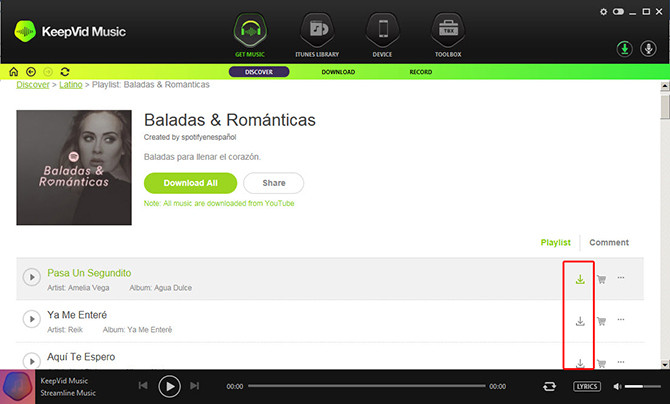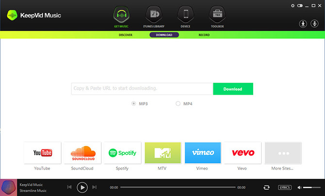Get Music: Tìm kiếm âm nhạc trên KeepVid Music hoặc trên YouTube; tải nhạc từ YouTube; ghi lại các bản nhạc trực tuyến từ các trang web cũng như các dịch vụ phát thanh trực tuyến).