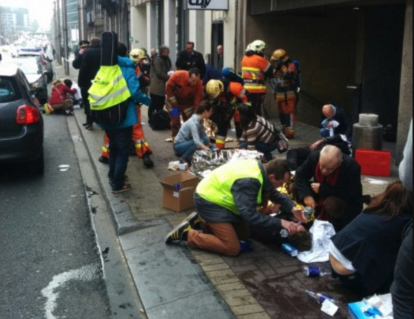 Nhân chứng tả cảnh máu me và các cảnh thi thể văng tung tóe khi hai vụ nổ bùng lên tại quầy làm thủ tục của hãng hàng không American Arlines. Quang cảnh như trong ngày tận thế. 90 phút sau, thêm 10 người chết trong vụ tấn công ga tàu điện ngầm nằm cách trụ sở EU chỉ khoảng 400m.