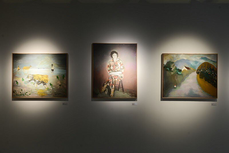 Các tác phẩm được giới thiệu tại “Nét” thuộc nhiều nhóm đề tài trong đó có những tác phẩm nổi tiếng thuộc các thể loại chân dung thiếu nữ, khoả thân (nude) trên các chất liệu đa dạng như sơn dầu, giấy dó, bột mầu, phấn sáp, mầu nước, ký hoạ than chì... Trong hình là chân dung bà Trần Thị Phi Phụng (giữa), phu nhân cố họa sĩ.