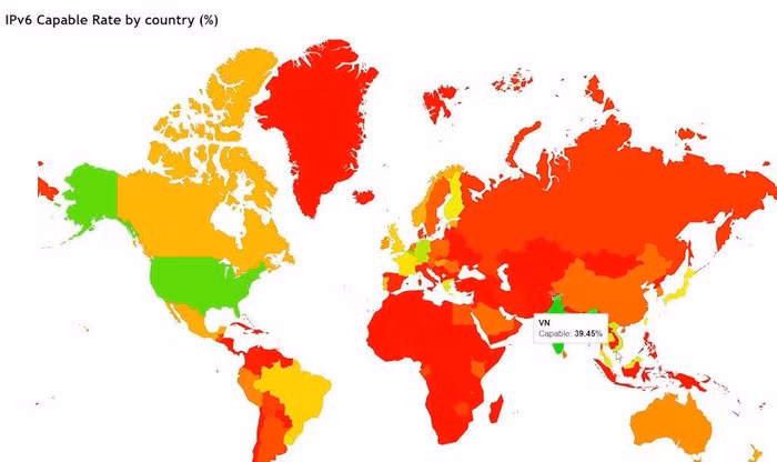 Thống kê của Trung tâm thông tin mạng châu Á – Thái Bình Dương (APNIC) cho thấy tỉ lệ ứng dụng IPv6 tại Việt Nam đã tăng trưởng hơn 300% chỉ trong vòng gần 3 năm, từ dưới 1% trong năm 2016 tăng lên đến 39,41% trong tháng 7/2019.