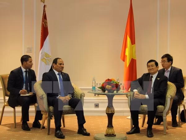 Chủ tịch nước Trương Tấn Sang gặp Tổng thống Ai Cập Abdel Fattah el-Sisi. (Ảnh: Cao Cường/TTXVN)