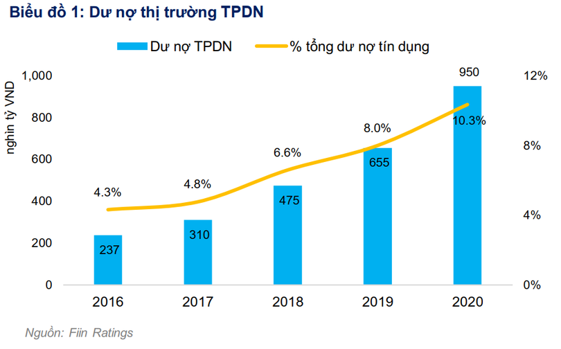 Quy mô phát hành mới này đã giúp cho thị trường TPDN đạt quy mô 950,3 nghìn tỉ đồng (trong tổng số hơn 1,2 triệu tỷ đồng đã phát hành 5 năm qua), tương đương 15,1% GDP và 10,3% tổng dư nợ tín dụng toàn hệ thống ngân hàng vào cuối năm 2020.