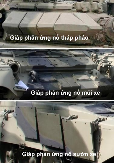 Trên xe tăng T-90, T90A được gắn giáp phản ứng nổ thế hệ thứ 2