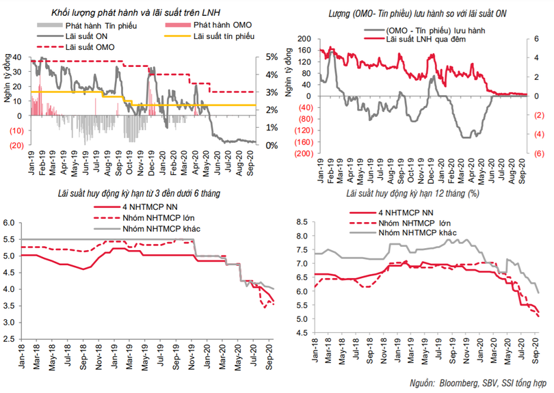 Tuyên bố duy trì chính sách lãi suất bằng 0 ít nhất tới năm 2023 của Cục dự trữ liên bang Mỹ (Fed) làm dấy lên các kỳ vọng NHNN Việt Nam sẽ tiếp tục giảm lãi suất điều hành. Tuy nhiên, lãi suất tiền gửi kỳ hạn dưới 6 tháng hiện phổ biến ở mức 2,85%-3,85%/năm, đã thấp hơn khá nhiều mức trần 4.25%/năm của NHNN.