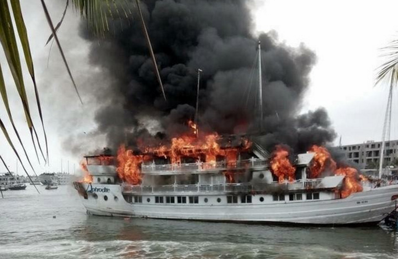 Tàu bị cháy có tên Phodite, BKS QN 6299, thuộc dạng tàu nghỉ đêm cao cấp. Một số nhân chứng cho biết, tàu vừa đưa khách nghỉ đêm về đến cảng và du lịch cũng vừa lên bờ không lâu thì bốc cháy.