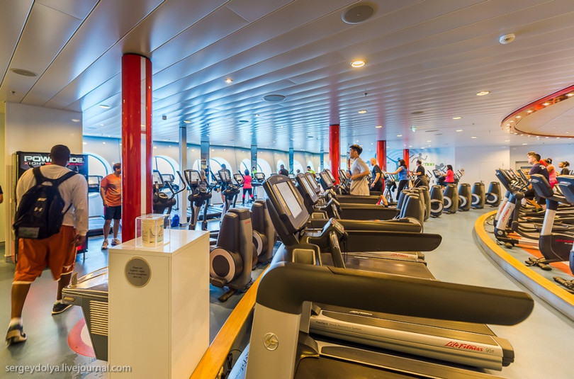 Một đường chạy được thiết kế ở tầng 5 dành cho thể dục, nhưng cũng là đường chạy cứu hộ ra các xuồng cứu sinh, đường có độ dài 700 m