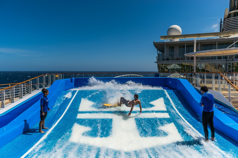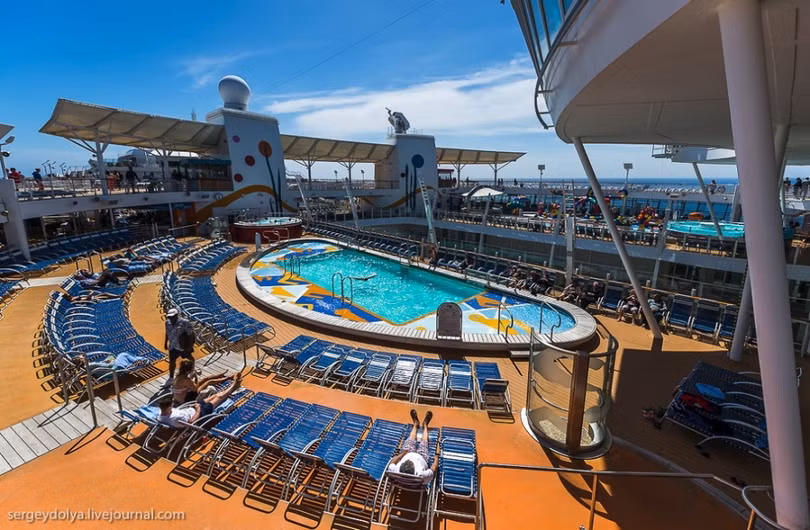 Có rất nhiều bể bơi trên tàu đủ các loại: bể người lớn, trẻ em, bể tạo sóng, bể vòi phun, bể sục ...