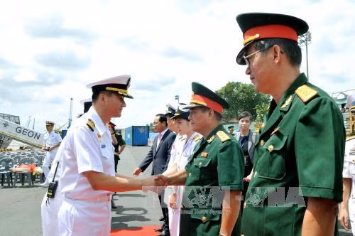 Đón tiếp đoàn tại cảng có đại diện Bộ Tư lệnh Quân chủng Hải quân phía Nam, Sở Ngoại vụ Thành phố Hồ Chí Minh, Tổng Lãnh sự quán Hàn Quốc tại Thành phố Hồ Chí Minh...