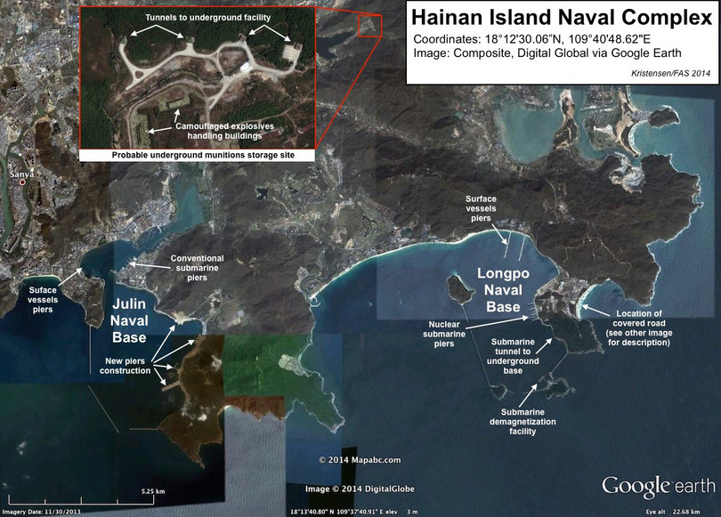 Những bức ảnh vệ tinh thương mại cho thấy Bắc Kinh đã và đang dành một nguồn lực lớn trong thập kỷ qua và trong tương lai xây dựng cơ sở hạ tầng cần thiết cho sự phát triển một hạm đội tàu ngầm nguyên tử mang tên lửa hạt nhân mạnh.