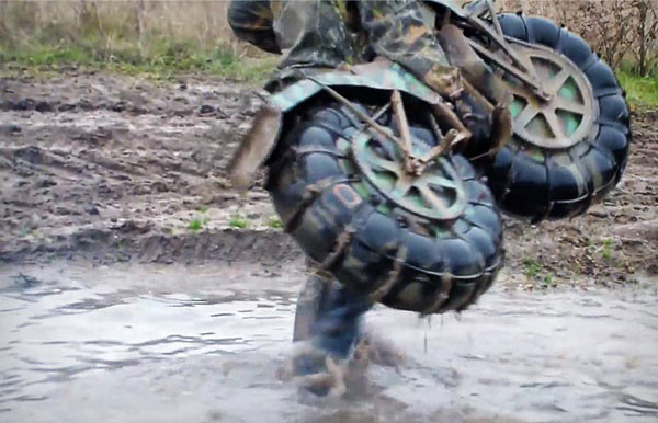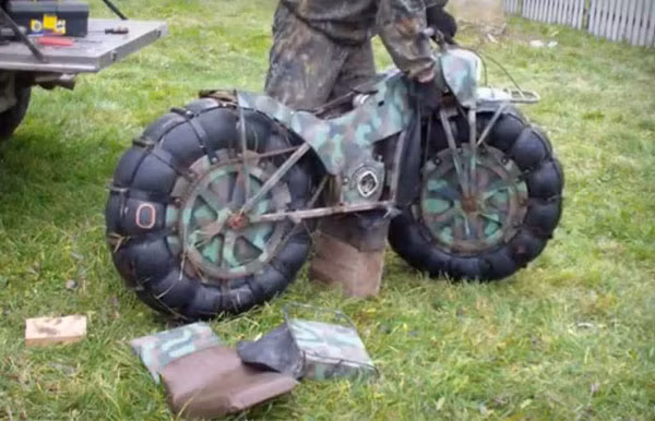 Nhưng điều đặc biệt nhất của chiếc xe chính là khả năng tháo dỡ như lắp lego. Chỉ gỡ bỏ các bộ phận, tháo hơi trên hai bánh xe, bạn có thể đưa chiếc xe địa hình vào hai chiếc túi để vừa vặn đằng sau ghế ngồi của một chiếc ô tô gia đình.